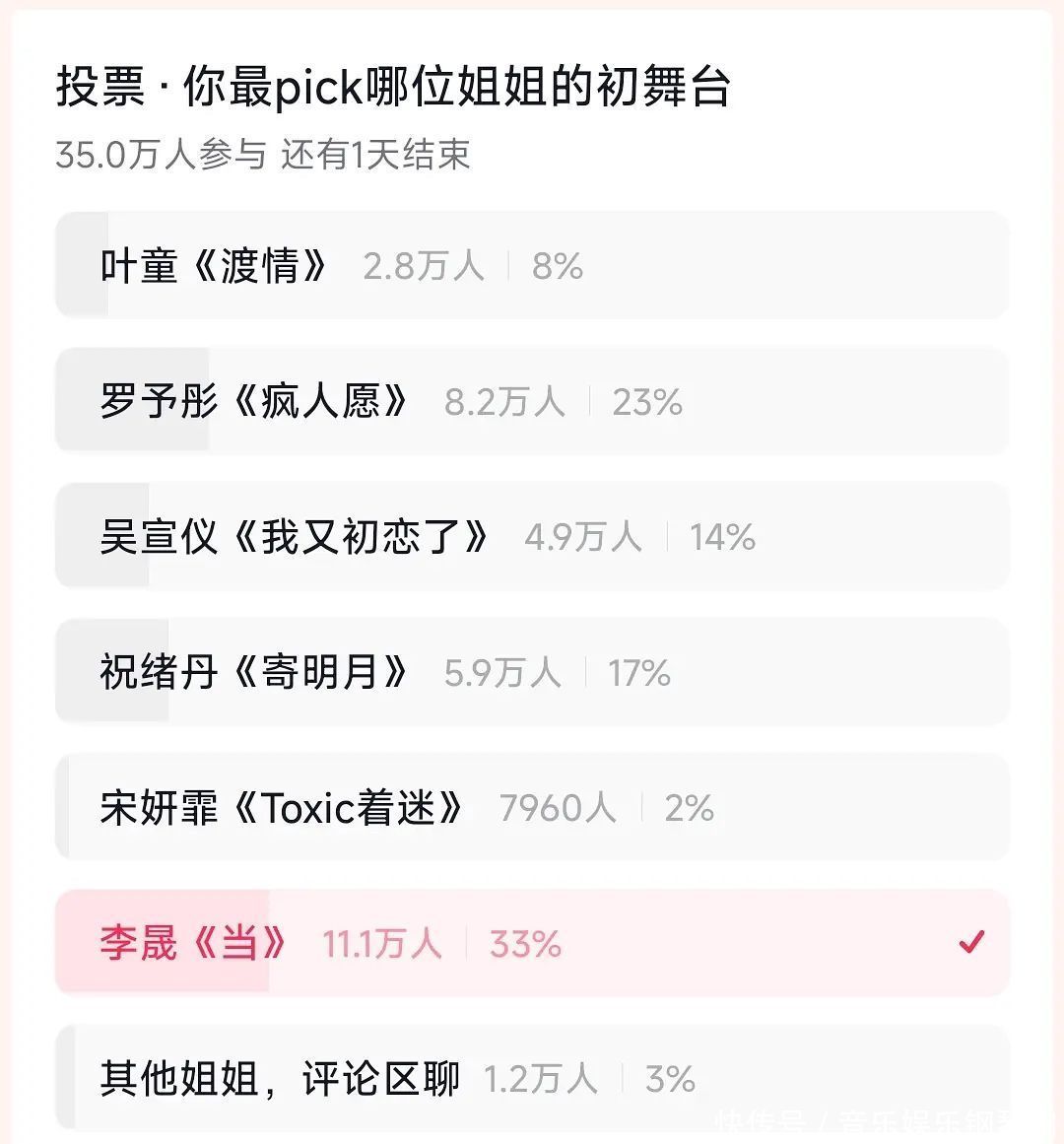而在最火的短视频平台,初舞台评级,李晟同样在这个平台以十几万的票数远超其他姐姐。
