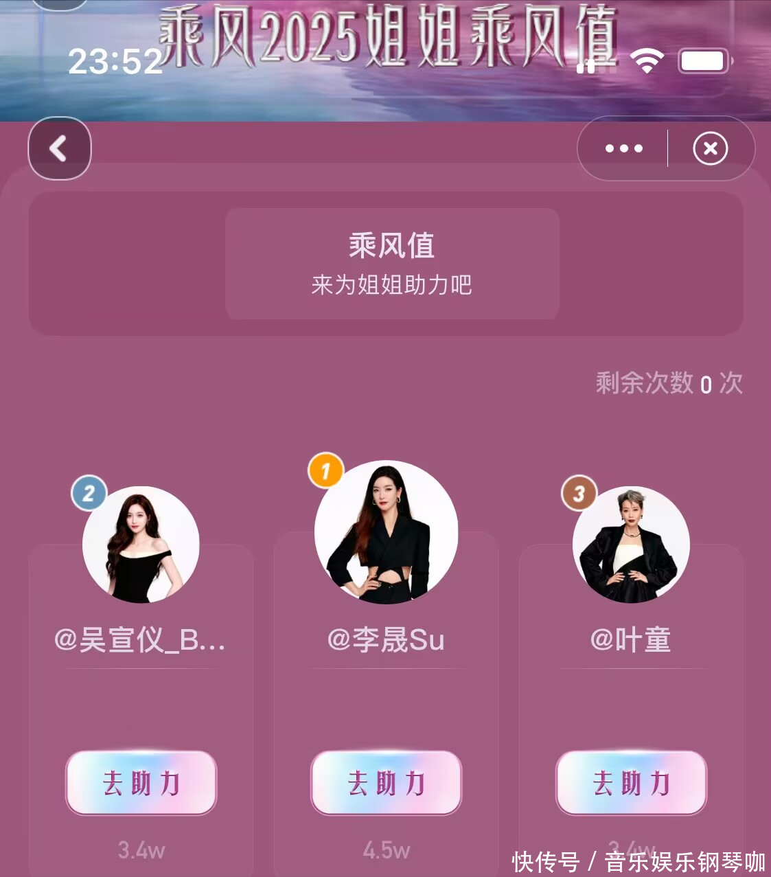 这个是《乘风2025》官方给到的网络助力值,纯人气的一个展示,和去年决赛的时候几位姐姐投票选舞台一样。